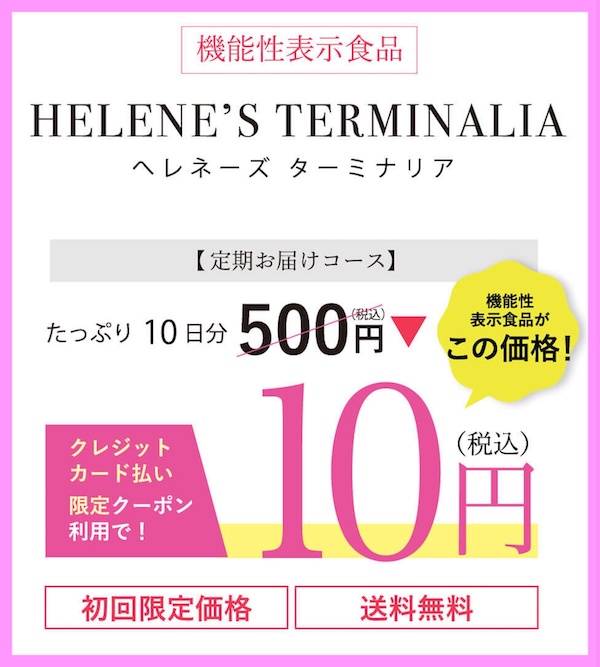 驚愕の実感力!!"ヘレネーズターミナリア"が初回10円キャンペーン中!在庫終了間近!?