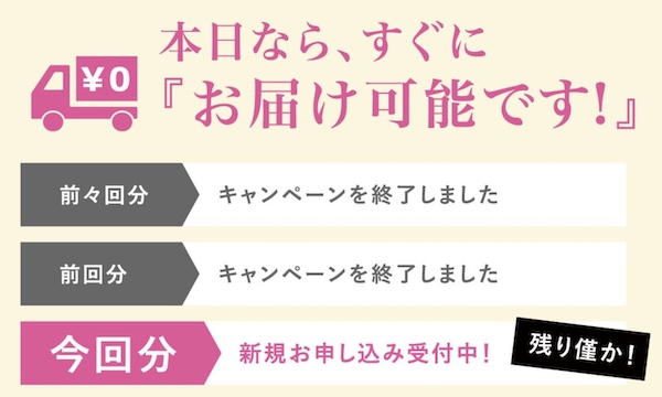ただし、このキャンペーンは在庫がなくなり次第、注文がストップしてしまいます。